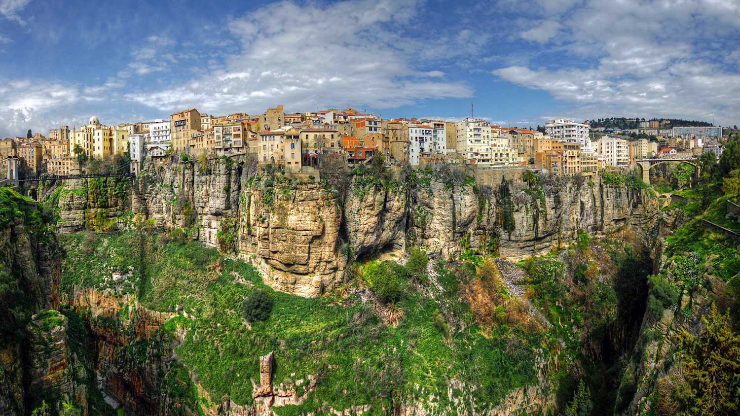 يعود تاريخ مدينة قسنطينة، الواقعة على الحدود مع تونس، إلى العصر اليوناني والروماني. وقد عاصرت المدينة عصورًا مختلفة، بما في ذلك العصر النوميدي، واليوناني، والروماني، والعثماني. مما يجعلها مدينة ذات تأثيرات ثقافية متعددة. كانت المدينة تُسمى سيرتا في العصر الروماني، وتم تغيير اسمها إلى “القسطنطينية” تكريمًا للإمبراطور قسطنطين الكبير. تحتل المدينة هضبة صخرية يبلغ ارتفاعها 650 مترًا، وتقع بين الوديان والمنحدرات. وتشتهر بالكثير من الجسور التي تم بناؤها على ارتفاع مئات الأمتار للربط بين التلال والوديان عبر وادي الرمال، ولذلك تُسمى “مدينة الجسور المعلقة”، مما يمنح المدينة سحرًا فريدًا. كما تضم المدينة العديد من المواقع الأثرية، والمتاحف، والأسواق التقليدية الصاخبة.