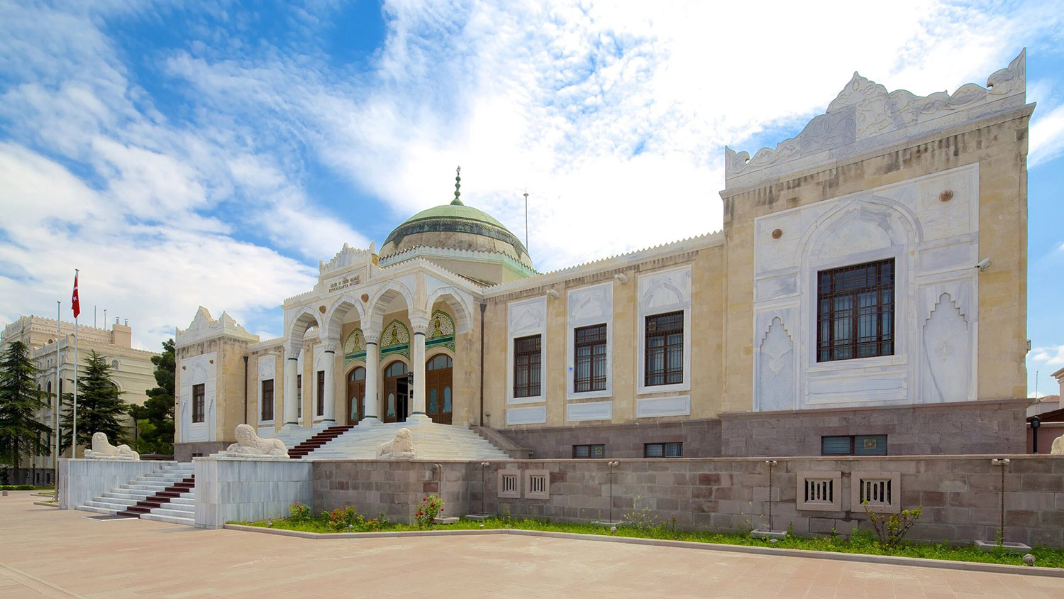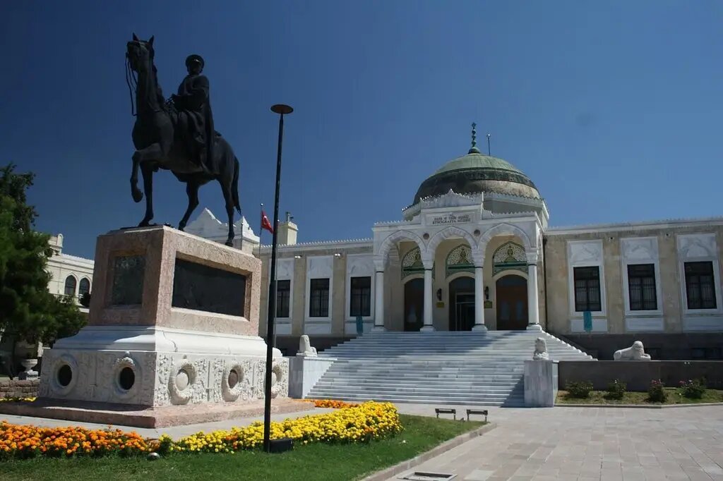 - شاهد تمثال الزعيم مصطفى كمال أتاتورك أمام المتحف مباشرة، وهو عبارة عن نصب برونزي لأتاتورك بقامة عسكرية وهو يمتطي حصانًا.
