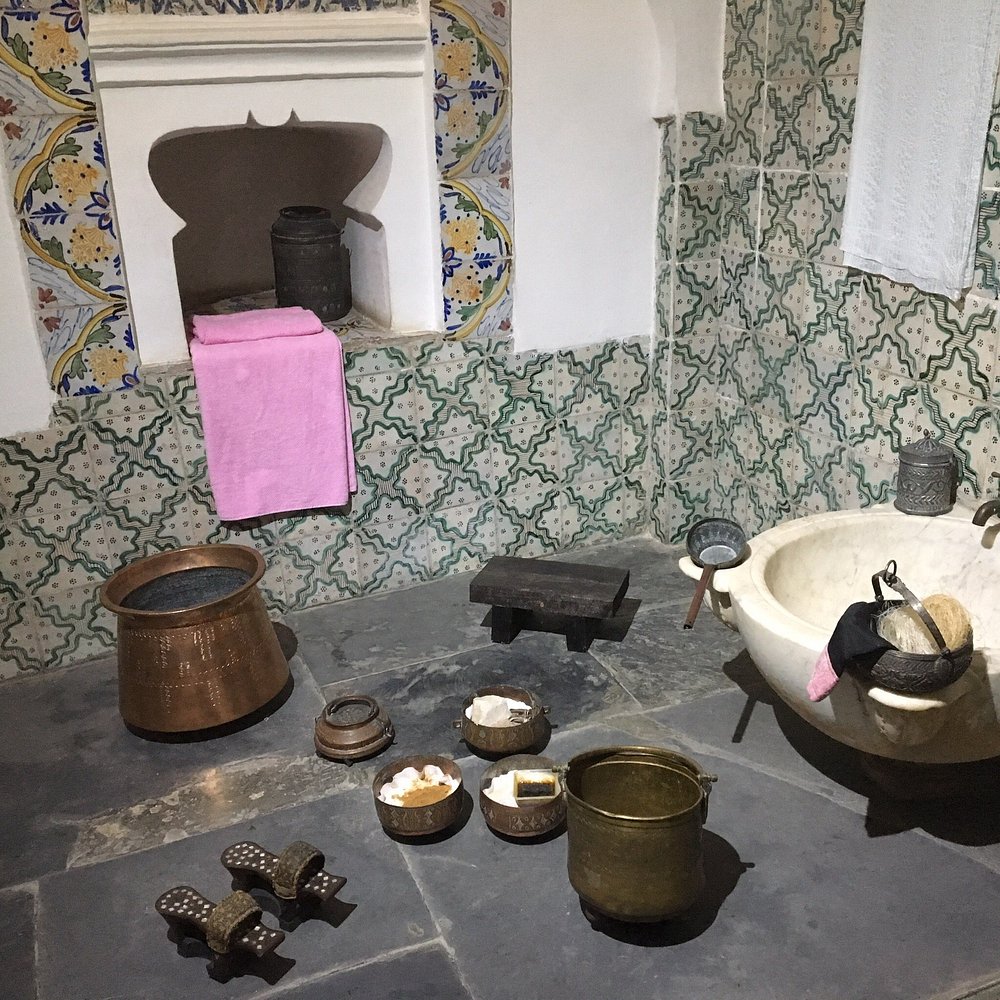 - استكشف عمارة القصر الذي يعود إلى القرن الثامن عشر، والذي شُيّد على الطراز الأندلسي والعثماني، ويضم نوافيرًا وبلاطًا خزفيًا أزرق اللون في جميع أنحائه.