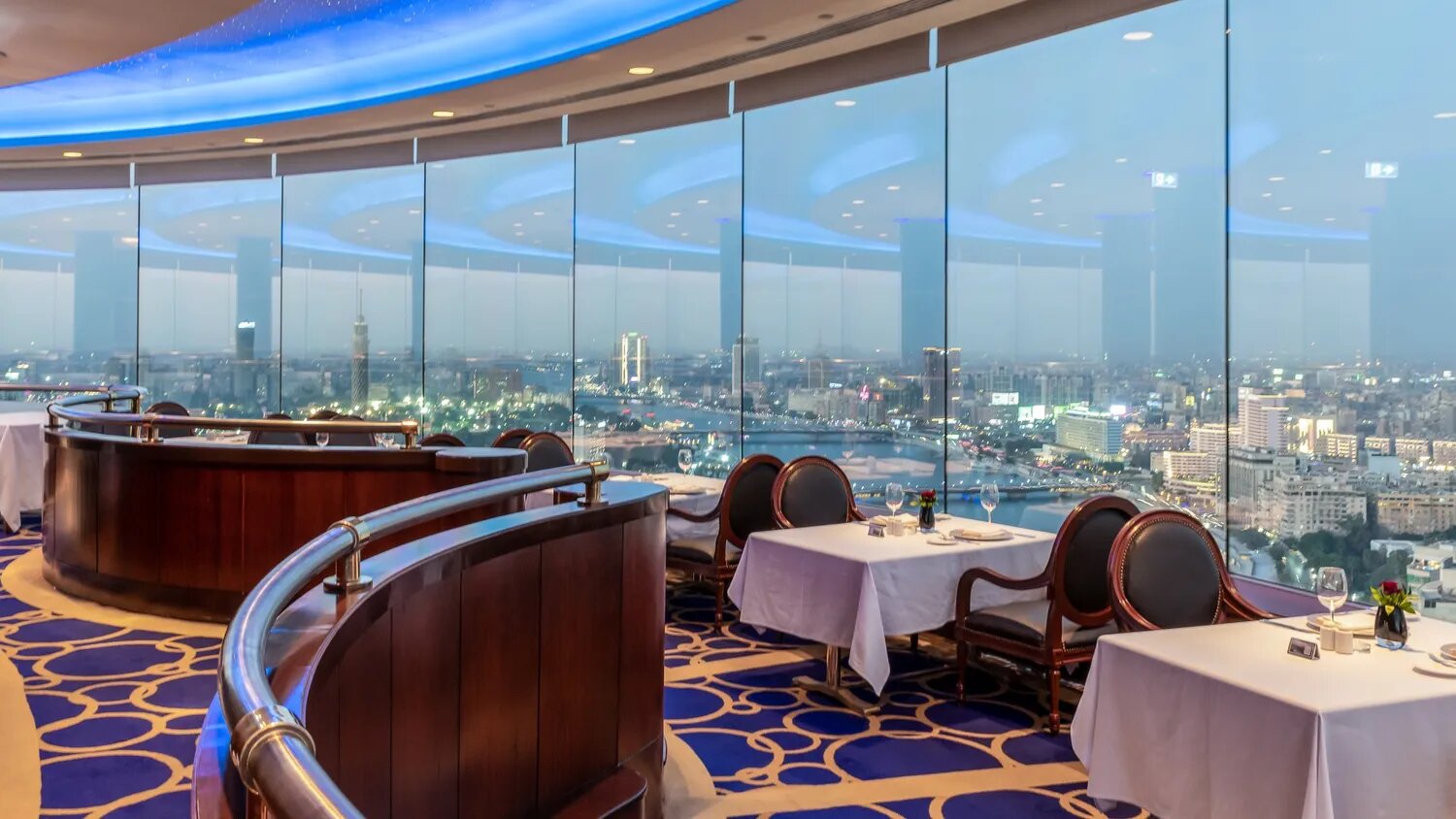 - استمتع بالمأكولات المصرية التقليدية من المطعم الدوار في الطابق الرابع عشر أثناء دوران المطعم مع إطلالات خلابة على الأفق.