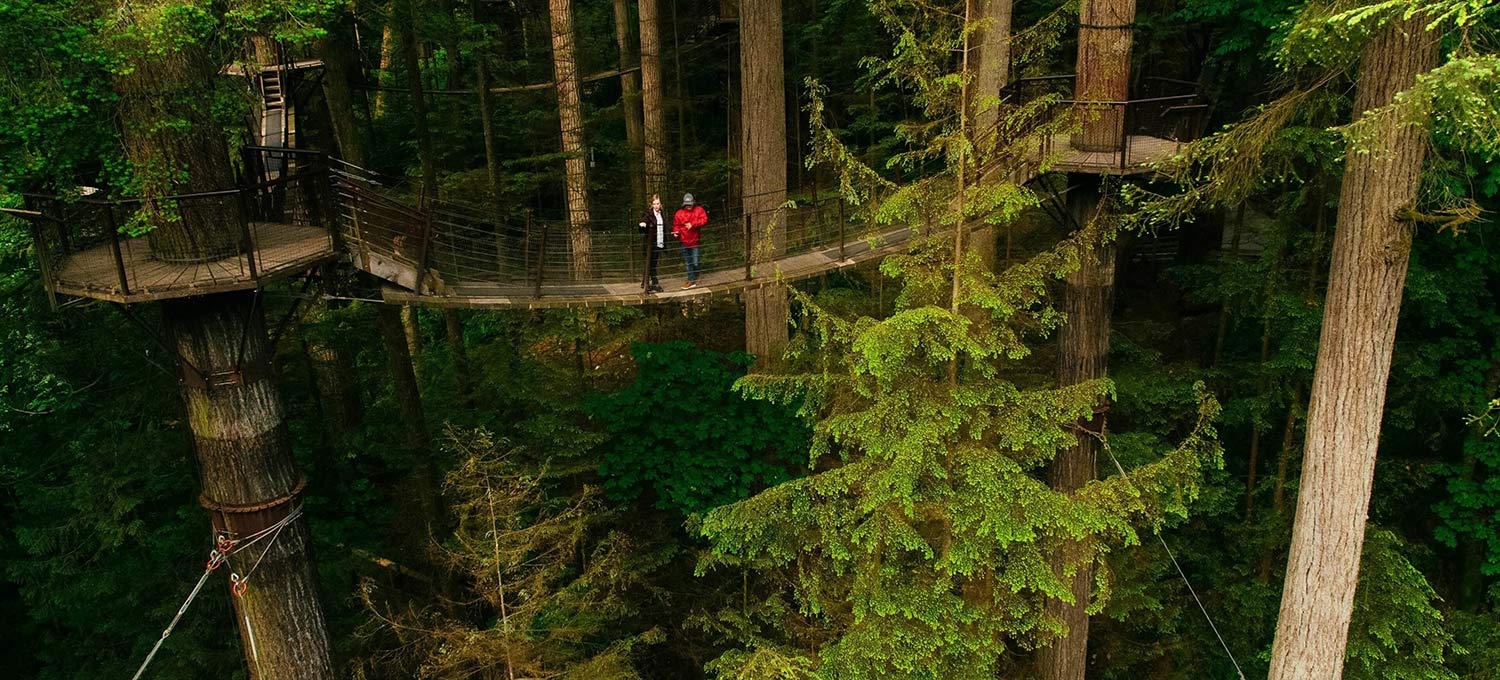 مغامرة قمم الأشجار في حديقة جسر كابيلانو المُعلَق هي تجربة مشي على ارتفاع حوالي 33 مترًا، تأخذ الزوار إلى عمق 110 أقدام عبر أغصان الغابة المطيرة الساحلية اعتمادًا على سبعة جسور ومنصات معلقة مُثبتة بثمانية أشجار صنوبر عتيقة. مما يمنح الزوار إطلالات خلابة على الغابة، وفهم أعمق لأهمية الغابات المطيرة للنظام البيئي. وهي تجربة مُتاحة لجميع الأعمار.