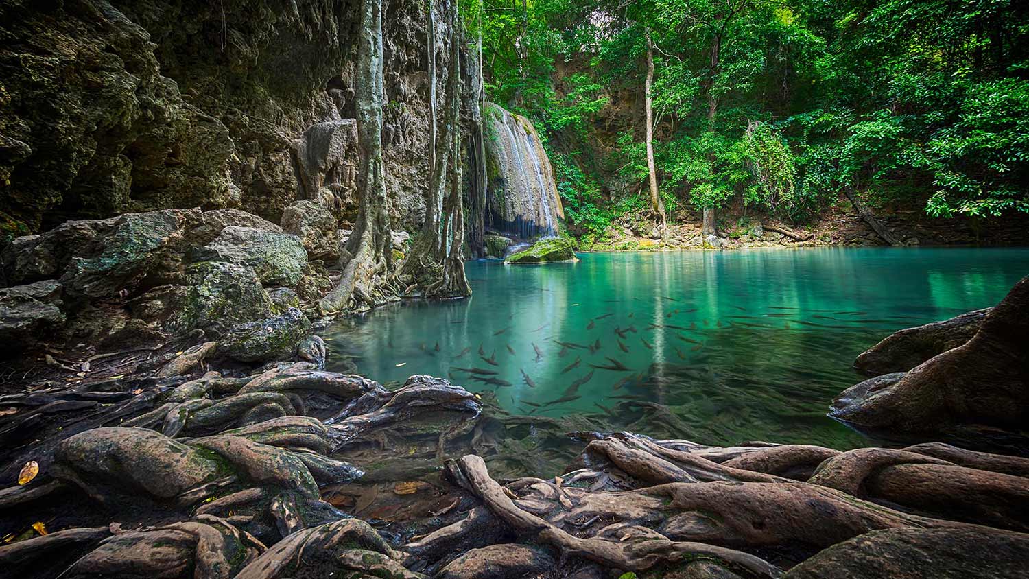 تمتد حديقة إيراوان الوطنية على مساحة 550 كيلومترًا مربعًا في غرب تايلاند ضمن سلسلة تلال تيناسيريم بمقاطعة كانشانابوري. ومن أبرز معالم الحديقة، الغابات الصنوبرية، وشلالات إيراوان ذات الطبقات السبع والبرك الخضراء الزمردية، والكهوف الطويلة الخلابة، والتلال الجيرية، والجداول المرتفعة. وتُعد الحديقة موطنًا للعديد من أنواع الثدييات والزواحف والطيور.