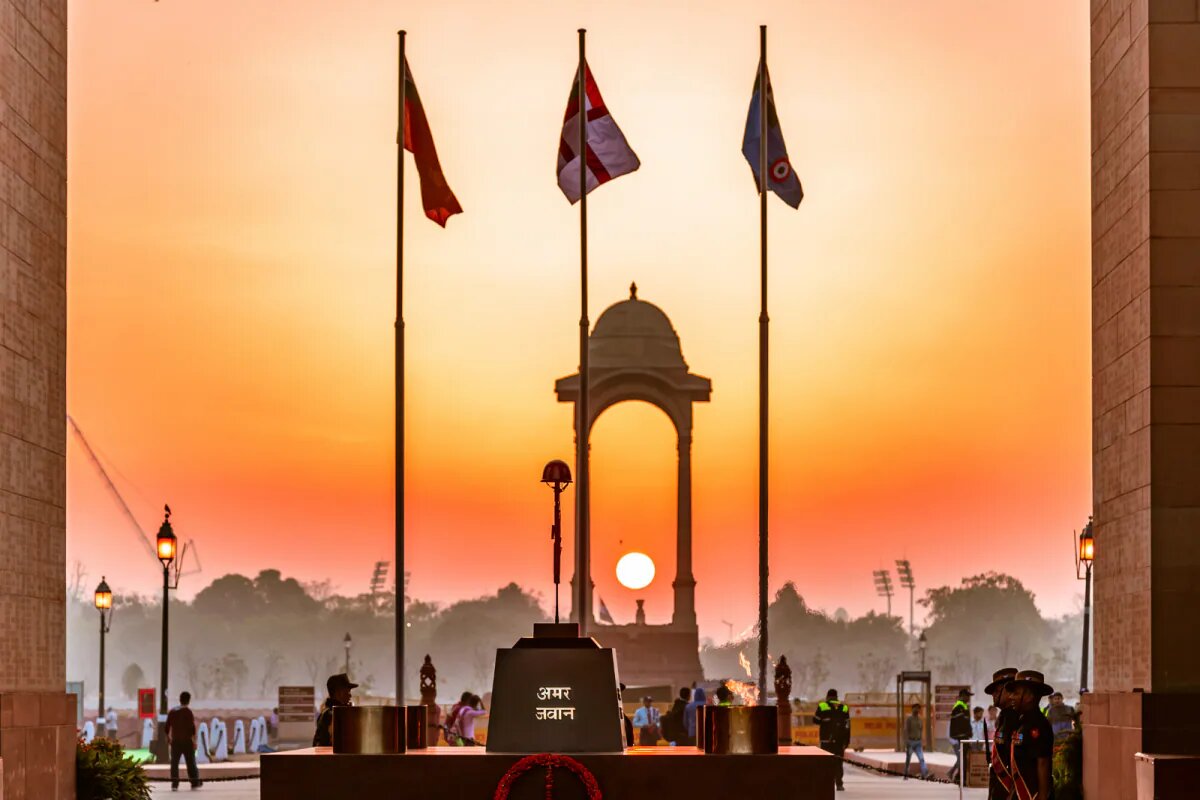 - شاهد إضاءة بوابة الهند عند حلول الليل، حيث تُضاء البوابة بشكل مبهر، بينما تقدم النوافير القريبة عرضًا متلألئًا بالأضواء الملونة.