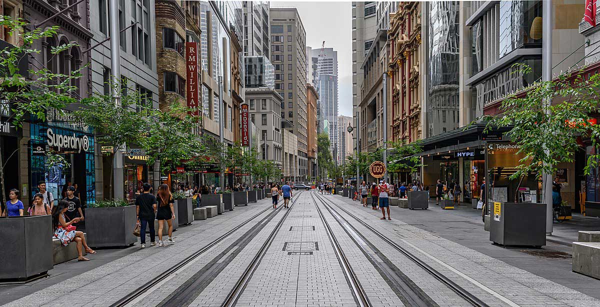 شارع جورج George Street هو أقدم شارع في أستراليا، وكان ذات يوم مساراً مجهولاً للذين يجلبون إمدادات المياه. واليوم هو واحد من شرايين المرور الرئيسية في مدينة سيدني، حيث تلتقي المكاتب والمحلات التجارية والمباني التاريخية الشاهقة في مزيج متباين. من أبرز المعالم المعمارية في شارع جورج، مبنى Queen Victoria الأنيق المصمم على الطراز الروماني، والذي يتميز بالقباب الفخمة والنوافذ الزجاجية المزخرفة والمتاجر الراقية.