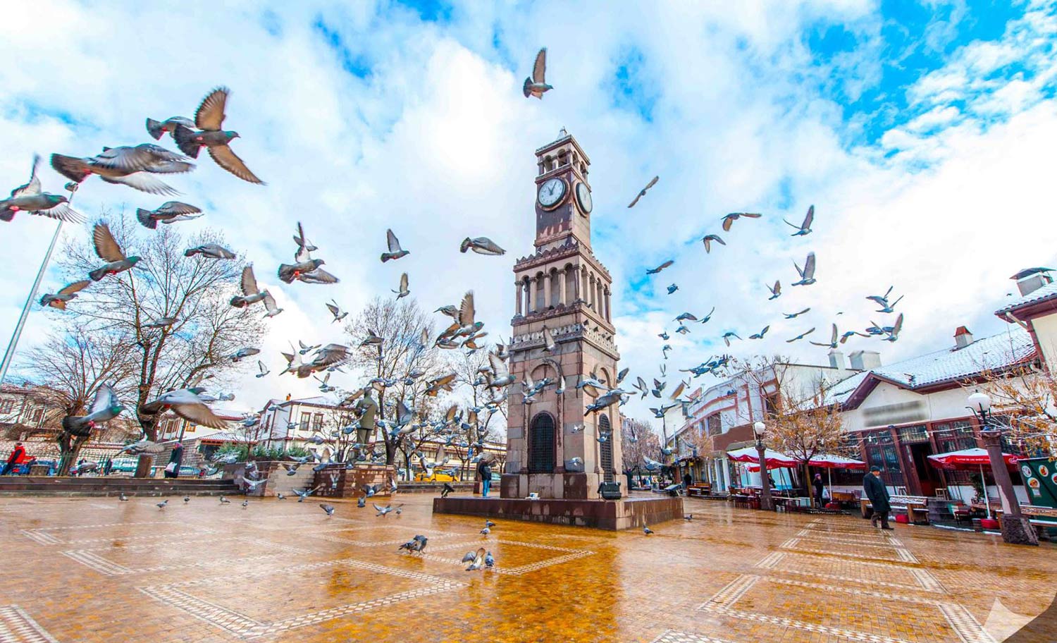 - شاهد برج الساعة الذي يتوسط ساحة تقع على الجانب الآخر من الشارع المقابل للحمام. وبالقرب أيضًا تمثال محمد عاكف إرسوي (1873-1936)، مؤلف النشيد الوطني التركي (الاستقلال).