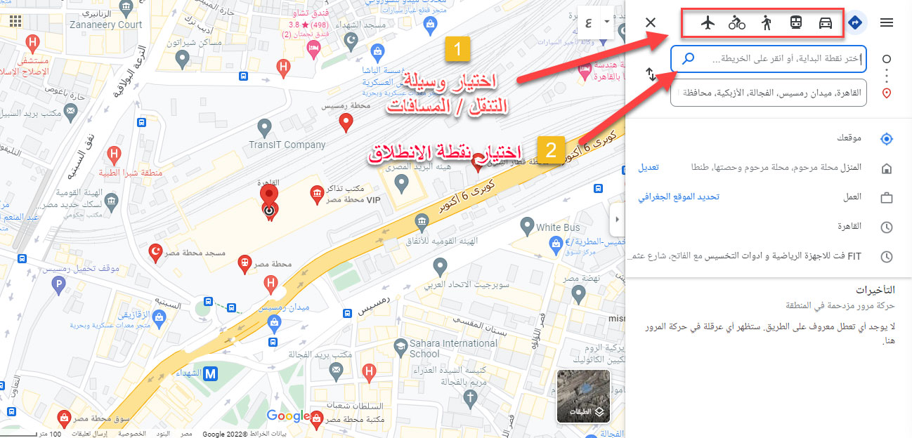 لتسهيل استخدام خدمة خرائط جوجل أثناء التنقل يمكنك تحديد عنوان المنزل أو العمل، للعثور على الاتجاهات من المنزل أو العمل بسهولة. يمكنك أيضاً العثور على أسرع مسار لاختصار رحلتك.