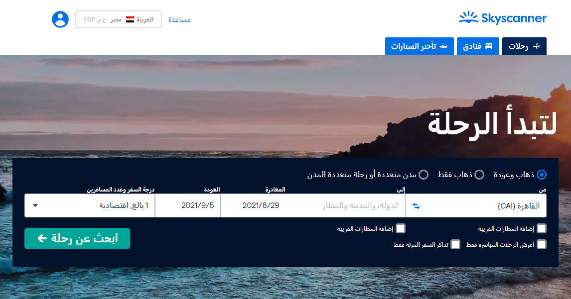 شرح حجز طيران من موقع Skyscanner