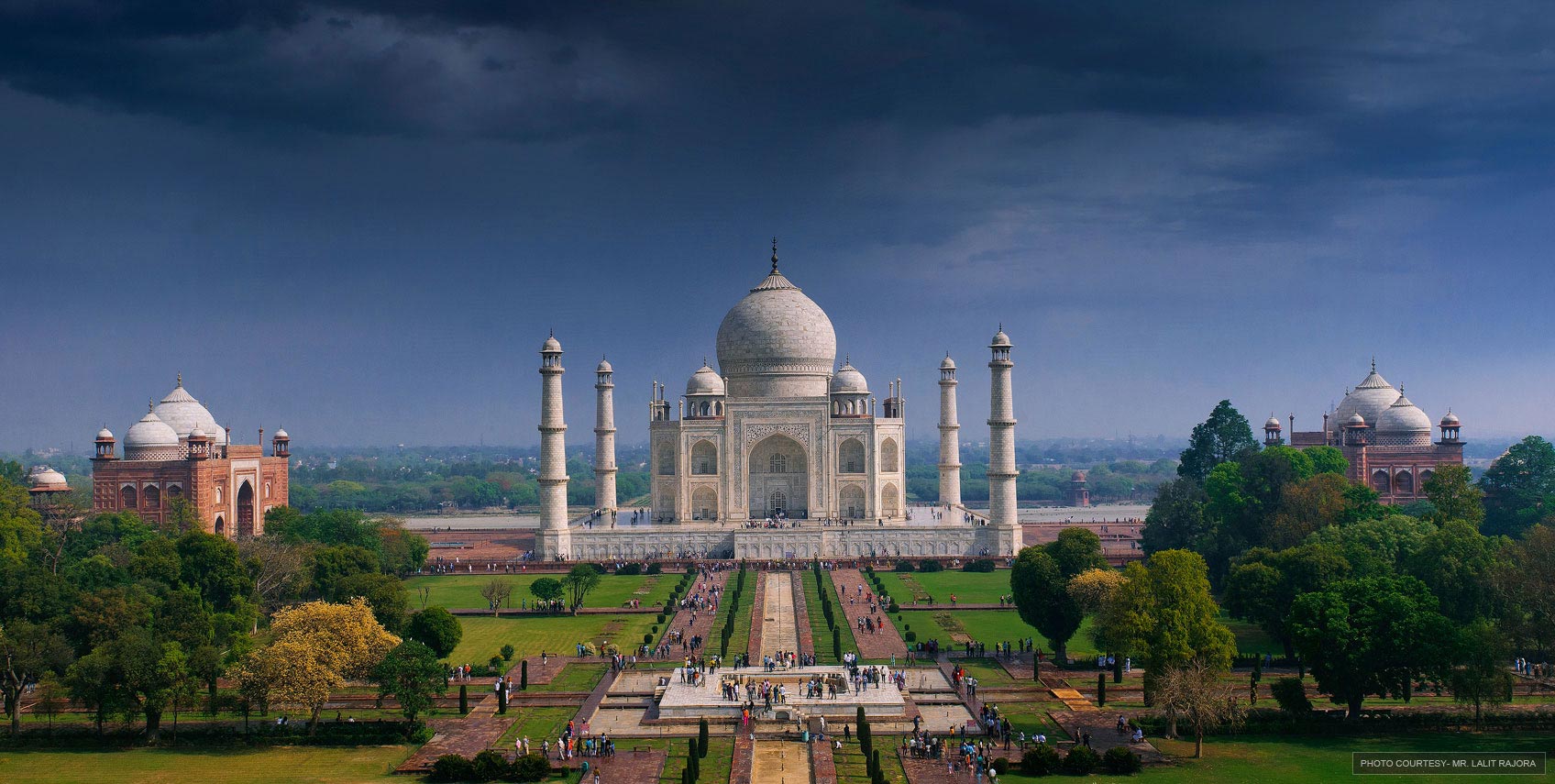 قصر تاج محل هو إحدى عجائب الدنيا السبع الحديثة، وأحد المعالم التاريخية الأكثر شهرة في العالم. تم بناء القصر من قِبل الإمبراطور المغولي شاه جاهان في عام 1632. وهو عبارة عن مجمع ضخم وضريح لإيواء رفات زوجته. وتم بناء هذا المجمع الشهير على مدار 20 عامًا على الضفة الجنوبية لنهر يامونا في مدينة أغرة بالهند، وهو أحد أبرز نماذج العمارة المغولية التي مزجت بين فن العمارة الهندي والفارسي والإسلامي. وقد أدرج تاج محل في قائمة مواقع التراث العالمي لليونسكو.