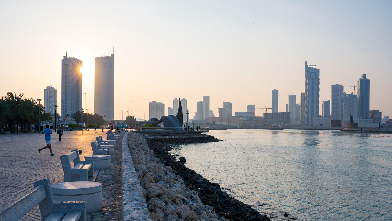 - تمشّ أو اركض أو اركب الدراجات الهوائية عبر مسارات الكورنيش المخصصة، مع إطلالات خلابة على الخليج العربي وناطحات السحاب الشاهقة وأفق المدينة.