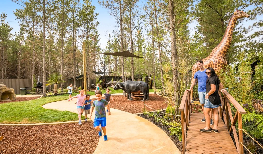 - زُر ملعب أرض المغامرات، وهي منطقة لعب تضم أكثر من 55 ميزة، مثل منزل الشجرة الشاهق، والتسلق الشبكي، ومنحوتات حيوانية، وأنفاق، وبيوت صغيرة، وأراجيح، ومنطقة مخصصة للأطفال.