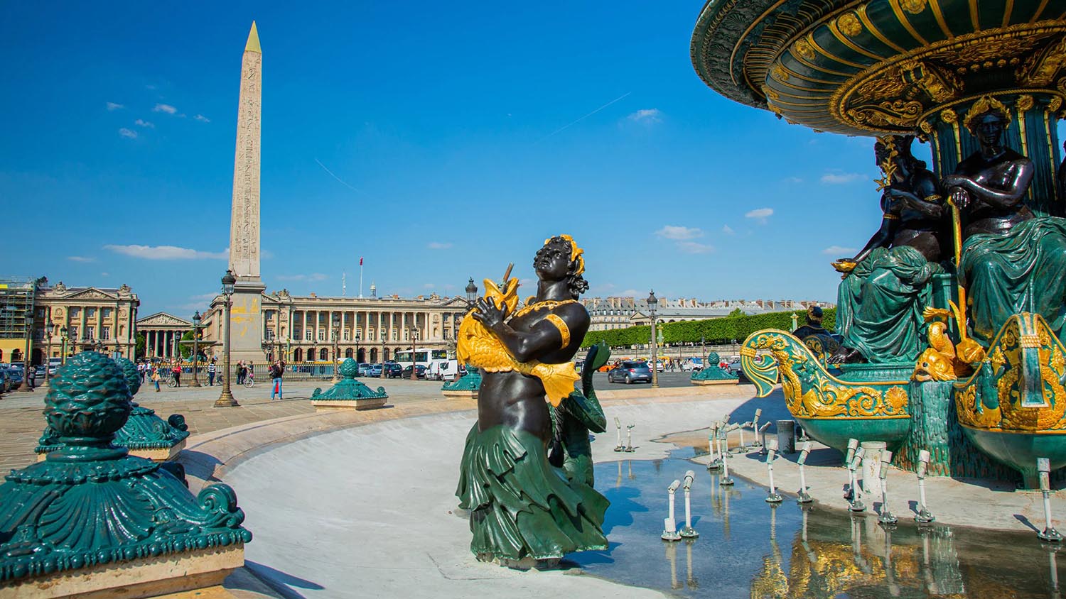 يقع ميدان الكونكورد على الضفة اليمنى لنهر السين، على مسافة قريبة من حديقة التويلري وشارع الشانزليزيه. وهو أكبر ميدان في باريس (19 فدانًا). وقد شهد الميدان مقصلة الثورة الفرنسية. ويضم معالم أثرية، وفنادق أنيقة، ونوافير وتماثيل مزخرفة، ومسلة فرعونية بطول 23 مترًا في منتصف الميدان.